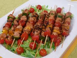 ثم نخرجه من الثلاجة ونرصه في اسياخ الشوي بالتبادل مع الطماطم والفلفل البارد
