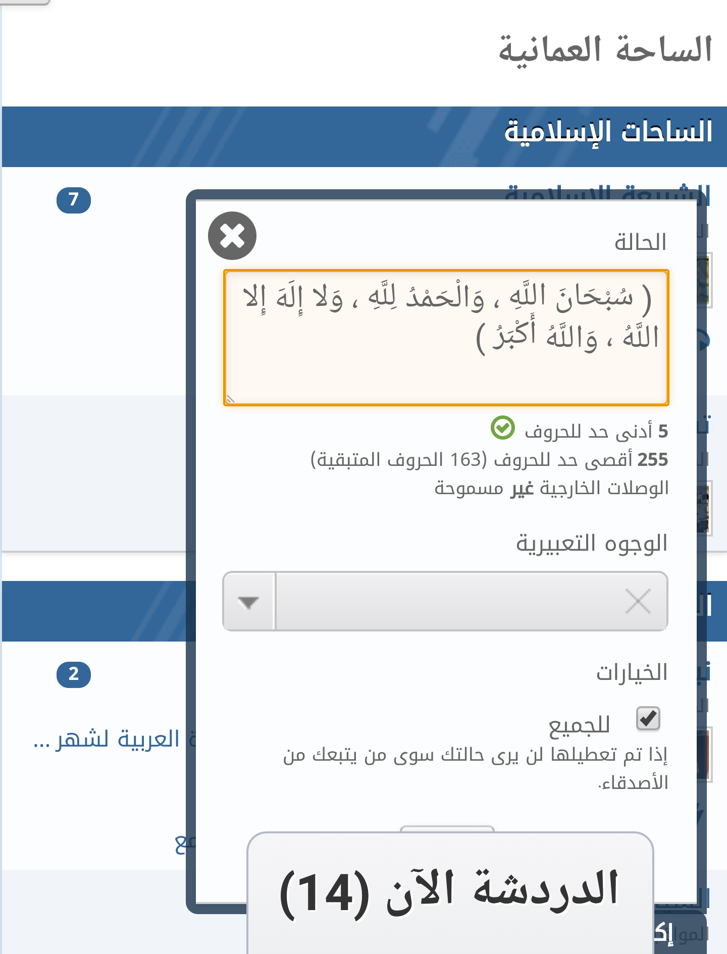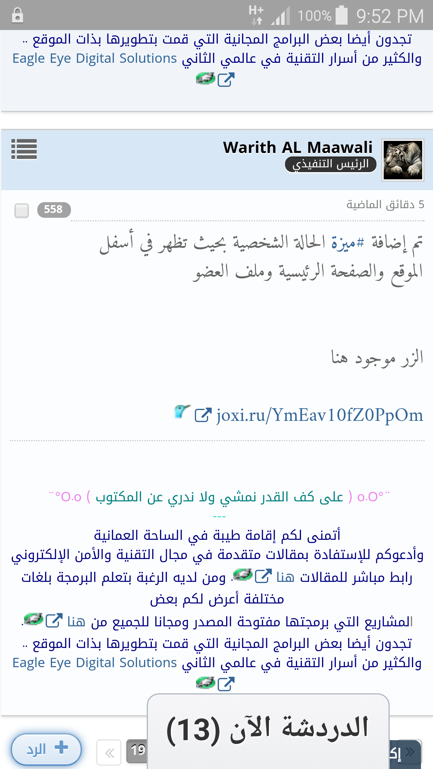 تم إضافة #ميزة الحالة الشخصية بحيث تظهر في أسفل الموقع والصفحة الرئيسية وملف العضو