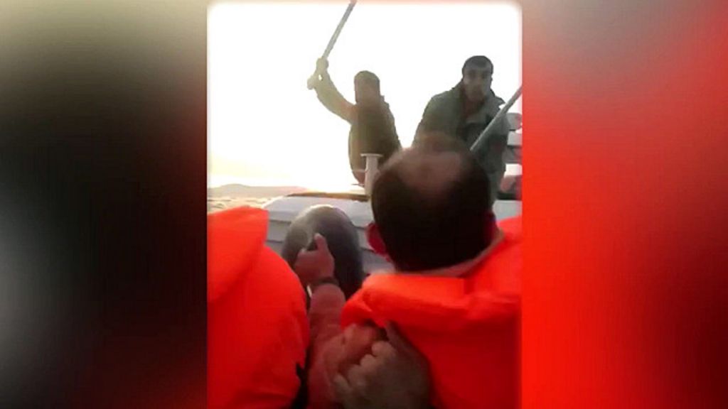 حصلت بي بي سي على شريط مصور يظهر رجال قوة خفر السواحل الأتراك وهم يستخدمون العصي لضرب زورق مليء بالمهاجرين أثناء محاولة عبورهم إلى اليونان.