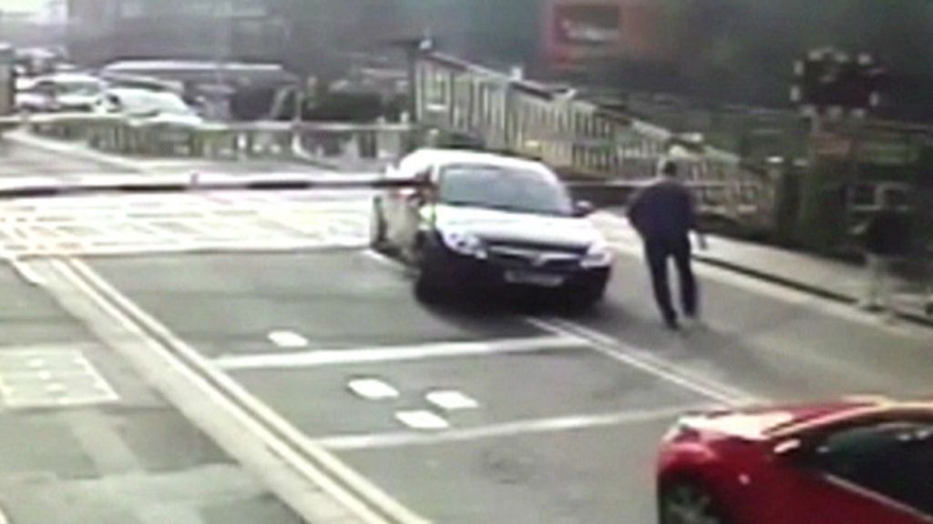 فتحت الشرطة البريطانية تحقيقا حول فيديو يظهر عملية انقاذ طفل كان داخل سيارة علقت عند تقاطع طرق مع سكة للقطارات.
