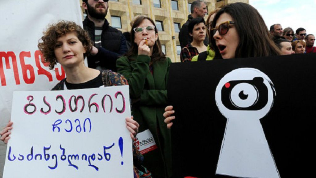 وقال مراسل بي بي سي في جورجيا إن المحتجين يرون أن مقاطع الفيديو المنشورة على الإنترنت لُفقت من أجل ردع رموز المعارضة، وإبعادهم عن الانتخابات البرلمانية المقرر إجراؤها هذا العام.