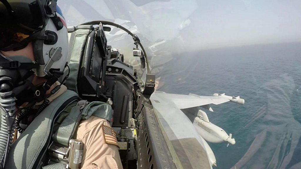 بي بي سي حصلت على إذن خاص من البنتاغون وأعدت هذا التقرير من على حاملة الطائرات الأمريكية.
