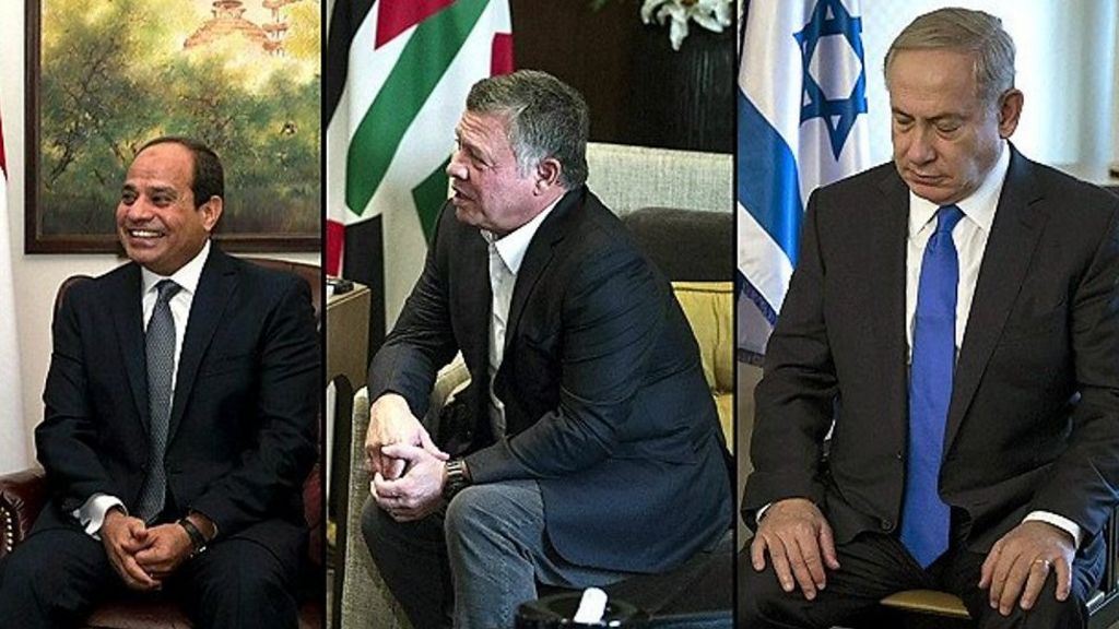 أقر رئيس الوزراء الإسرائيلي بنيامين نتنياهو بعقد لقاء سري مع العاهل الأردني عبد الله الثاني والرئيس المصري عبد الفتاح السيسي، بمبادرة خاصة منه لدفع عملية السلام مع الفلسطينيين، في العقبة بالأردن مارس/آذار الماضي.