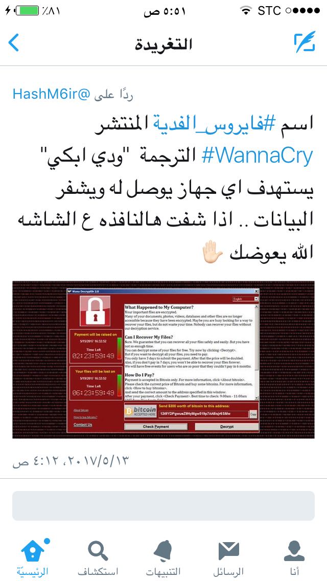 [*]》بلدية تيمرا السويدية الواقعة شمال البلاد، أنها اصيبت بالهجوم الفيروسي وأن أجهزة الكمبيوتر أصبحت رهين البرنامج الخبيث.